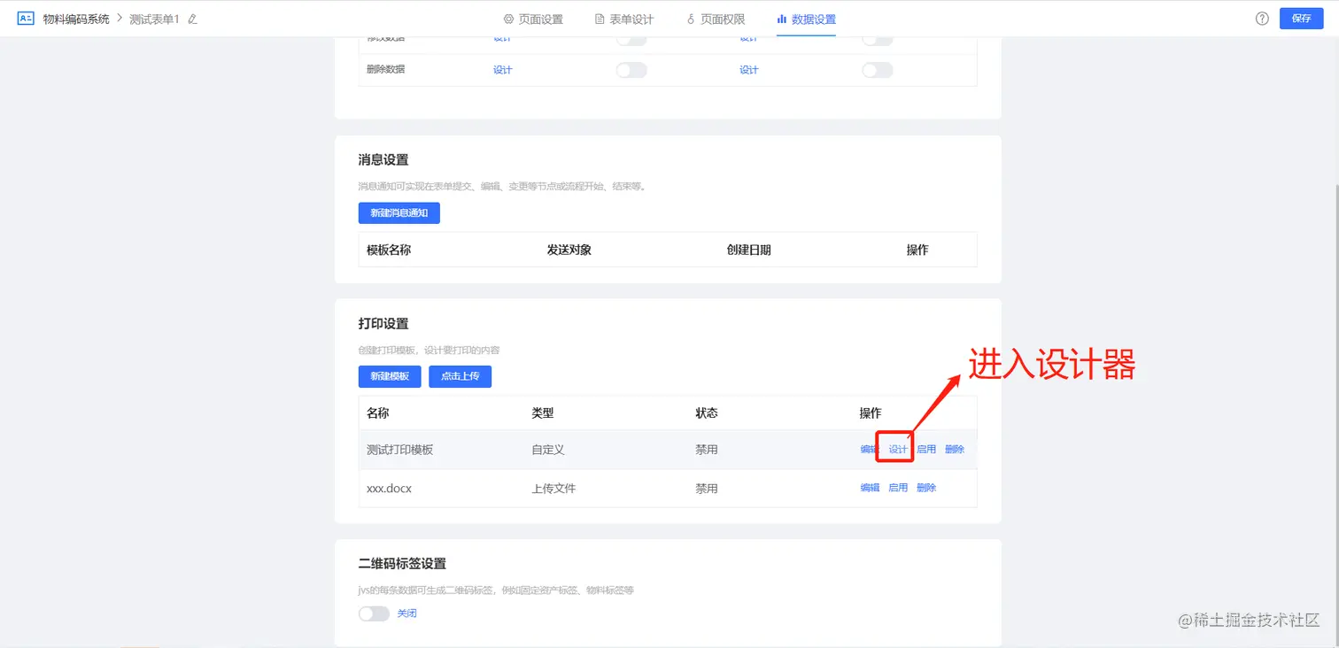 点击自定义模板的设计按钮,进入设计器