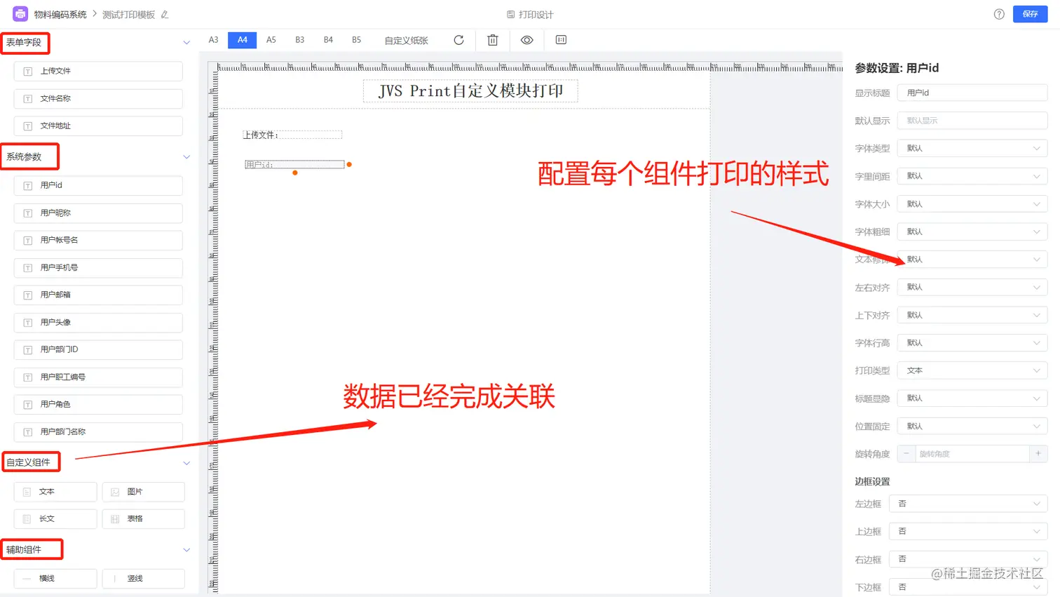 数据关联系统已经完成,只需要配置对应的打印样式即可。