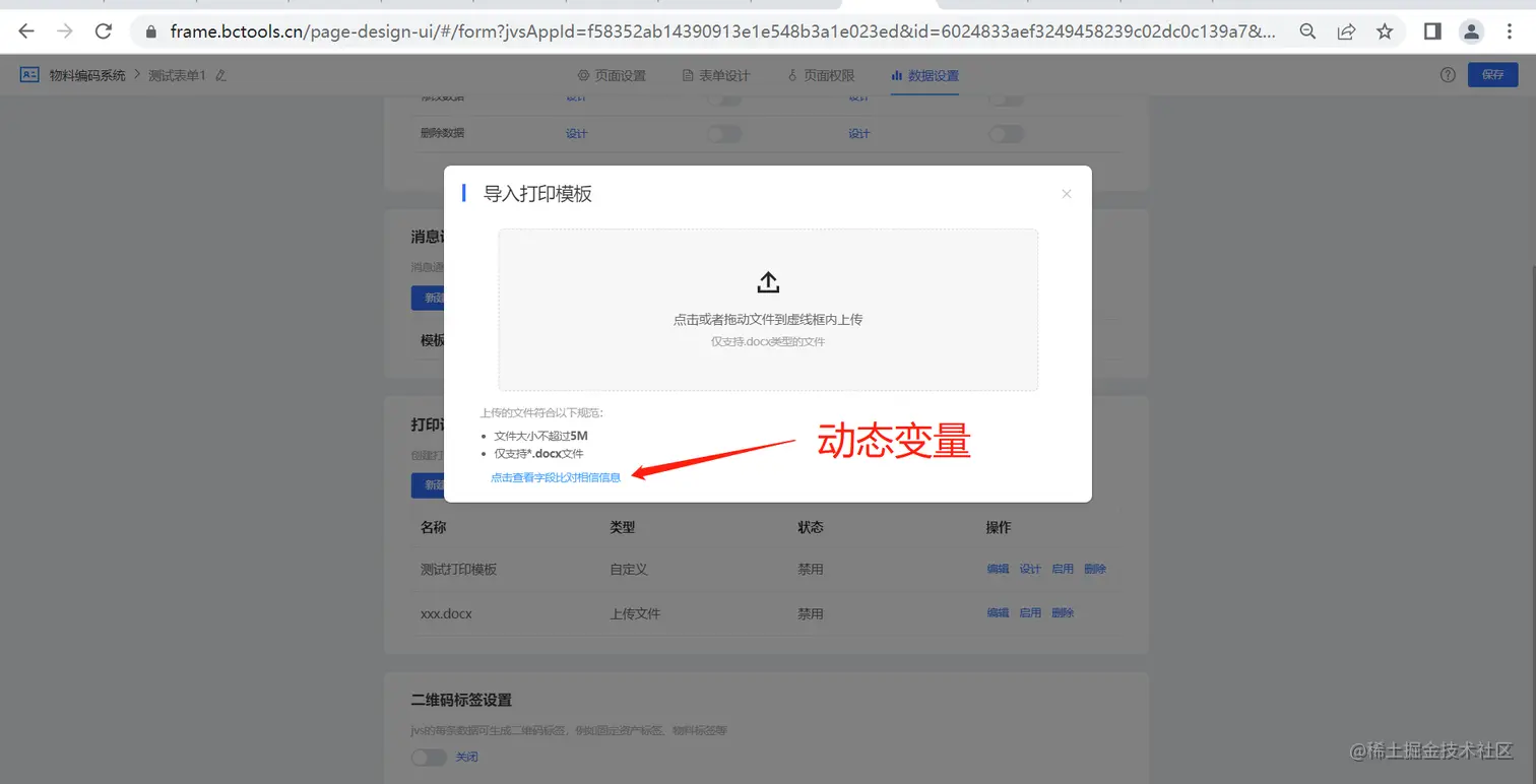 上传模板时,可以查询对应表单的相关变量,如下图所示