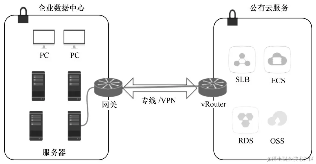 l 连通性上,企业需要通过专线或 VPN 来建立自有数据中心和公有云之间的网络连通。