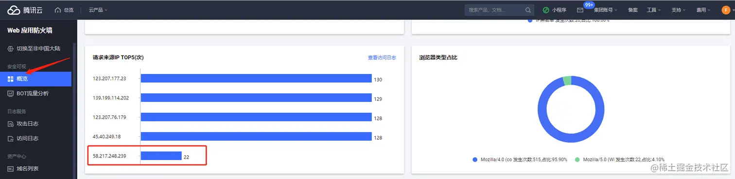 在概览中也看到攻击的统计数据:
