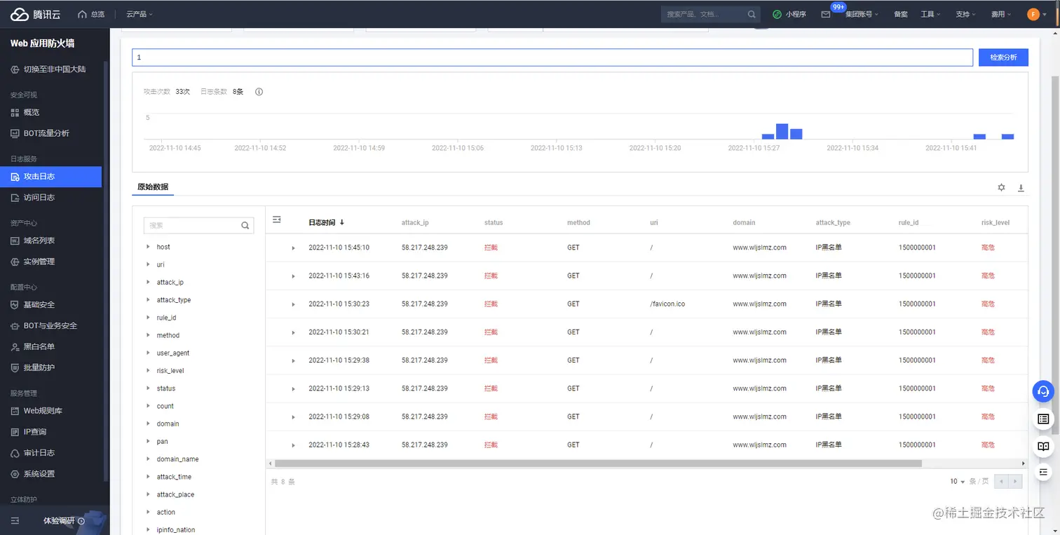 本文我将以腾讯云的T-Sec Web应用防火墙为例给大家展示一下如何设置黑名单,以及设置了黑名单后的效果是什么样的。