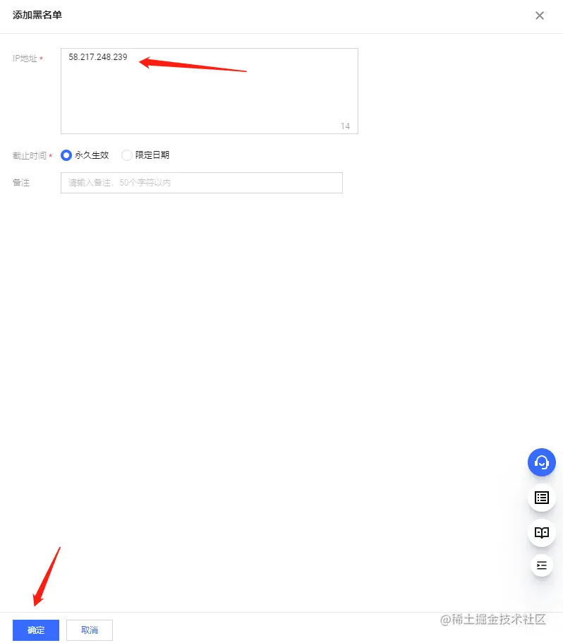 在添加黑名单页面填写一下上面我电脑出口的公网地址: