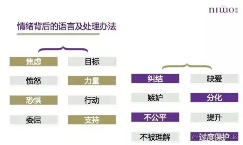 而在识别情绪基础上,理解对方情绪背后的语言,再进行后续确认事实和明确行动的后续环节。如图是关于情绪及其对应处理办法的一个总结。