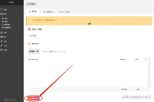 首先我们要以管理员身份,在Piwigo上传一两张图片,否则在公共互联网用户访问没有图片的Piwigo网站时,很可能会出现模板调用错误。
