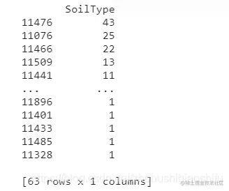 好的,没有问题:可以看到此结果共有63行,也就是'SoilType'列原本是有63个不同的值的,证明我们的独热编码没有出错。