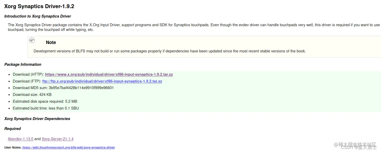 可以看到,产生70-synaptics.conf文件的源码包是xf86-input-synaptics-xx.xx.xx.tar.gz(其中:xx代表版本号)。