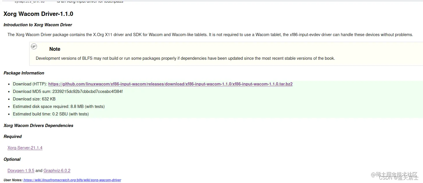 根据以上信息可以看到,70-wacom.conf属于xsever-xorg-input-wacom包。那么这个包又是通过哪个源码包安装的呢?我们需要在BLFS中寻找答案,见以下链接: