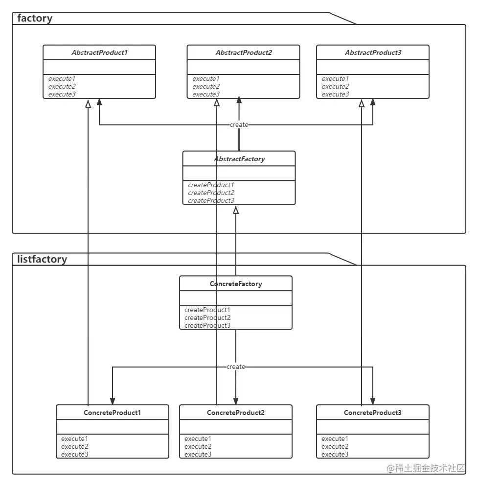 负责实现AbstractFactory角色中的接口,如示例代码中的ListFactory类;