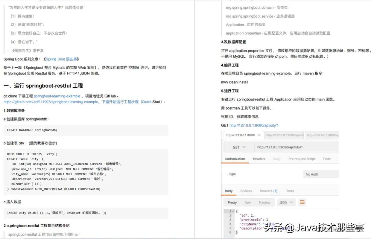 - Springboot-restful ⼯程项⽬结构介绍