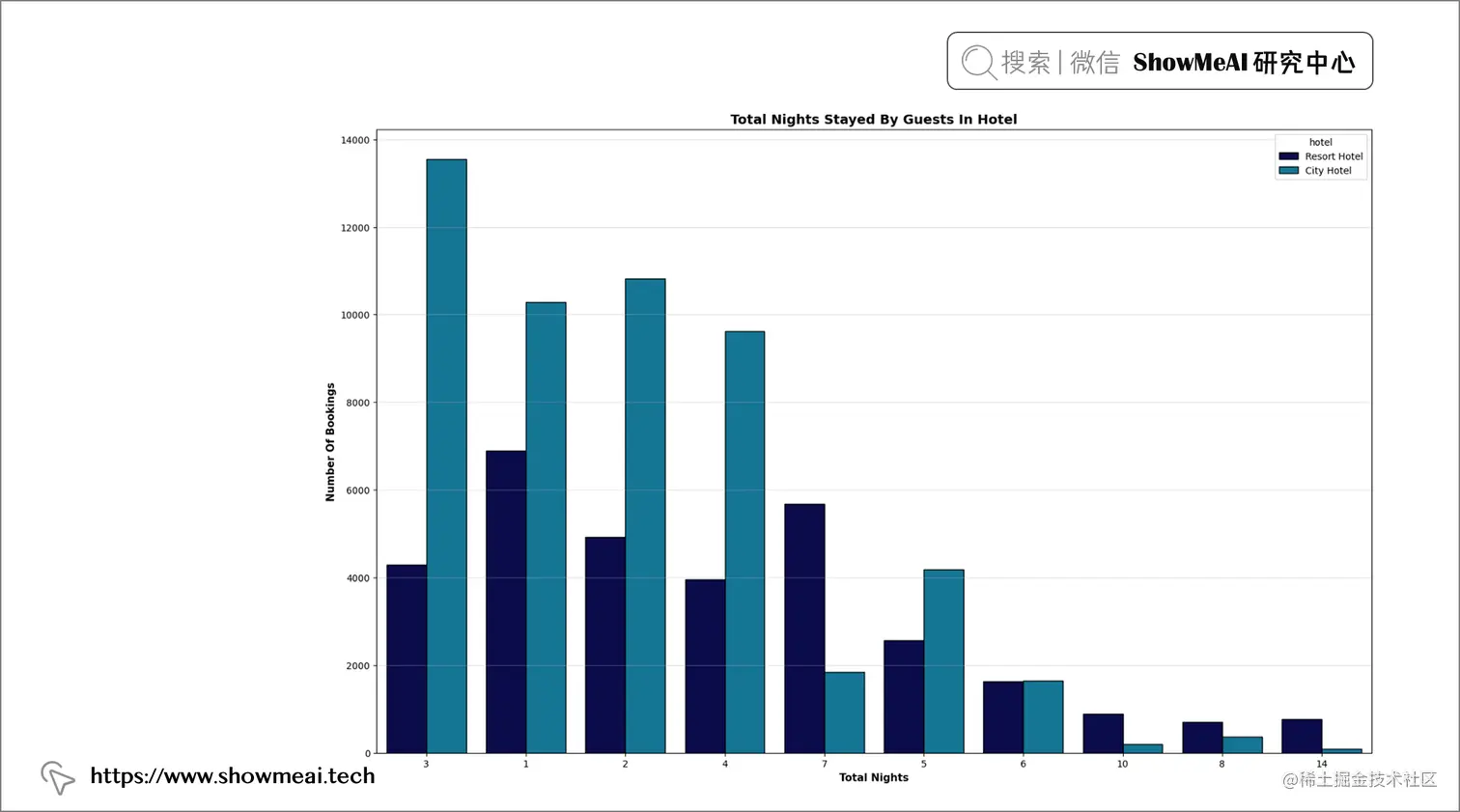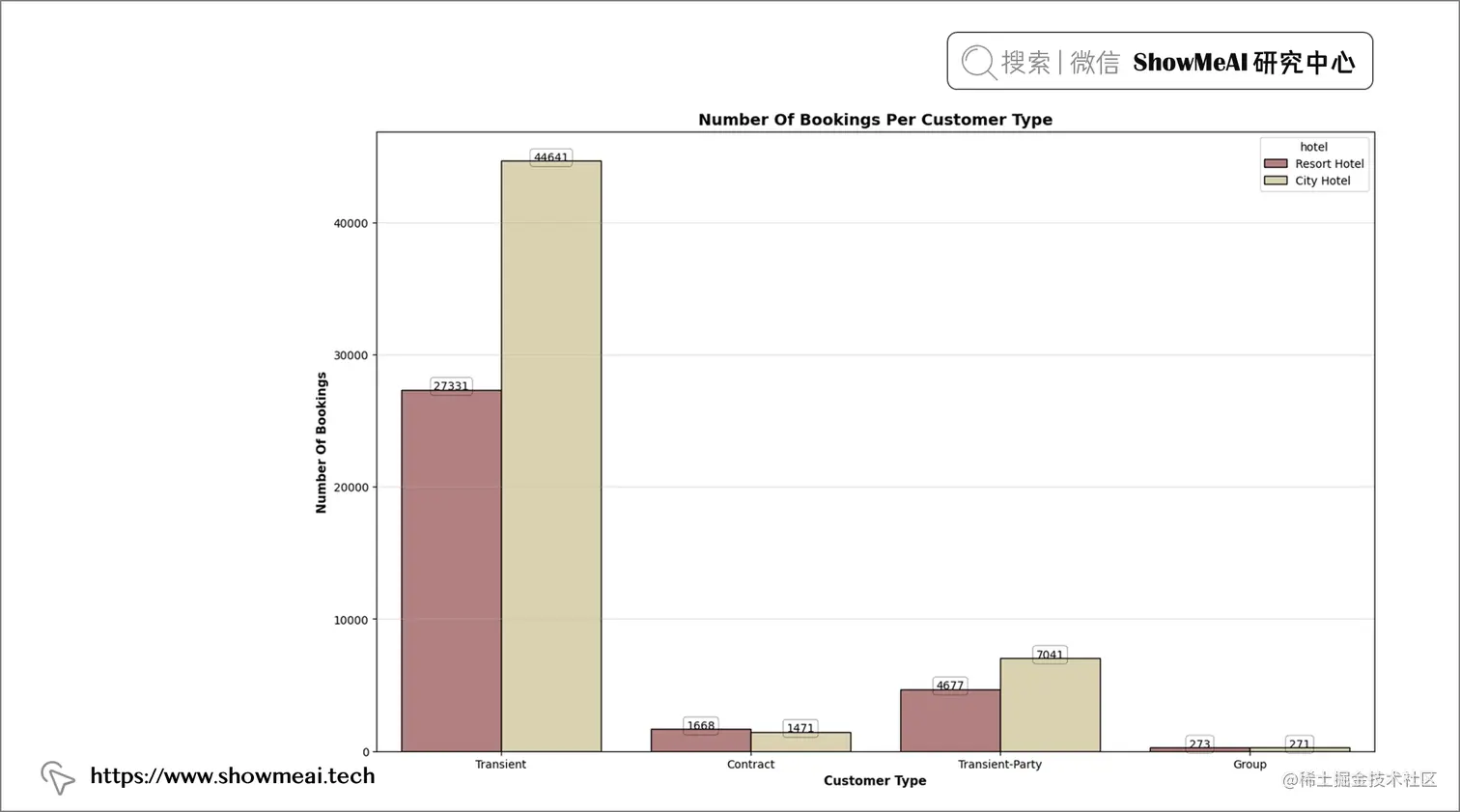 📢 结论:临时和临时派对客人大多预订城市酒店,而跟团客人在度假村和城市酒店的预订数量几乎相同。