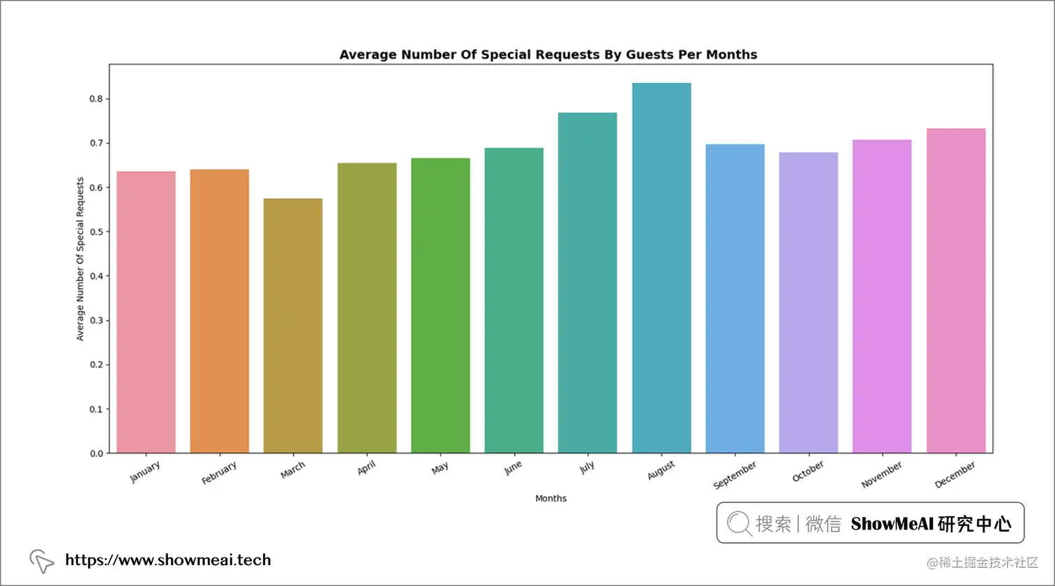 📢 结论:客人在几个月内提出了几乎相似数量的特殊要求,但在 8 月、7 月和 12 月提出的特殊要求略多一些。