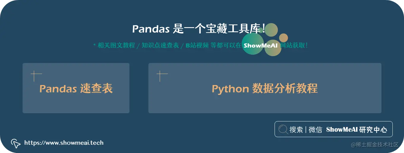 - 📘 数据科学工具库速查表 | Pandas 速查表:www.showmeai.tech/article-det…