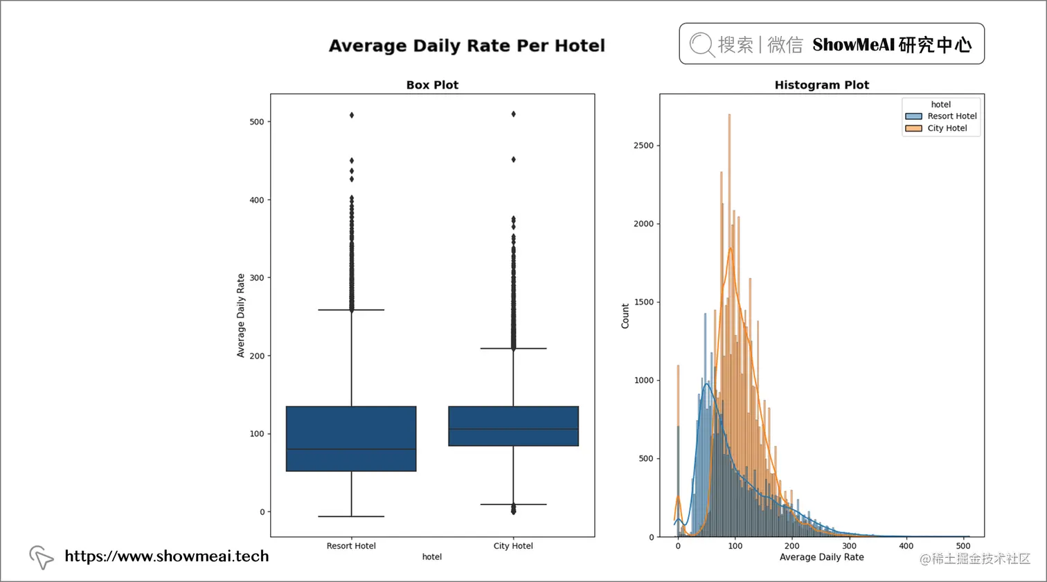 📢 结论:度假村酒店的平均每日价格比城市酒店更分散。