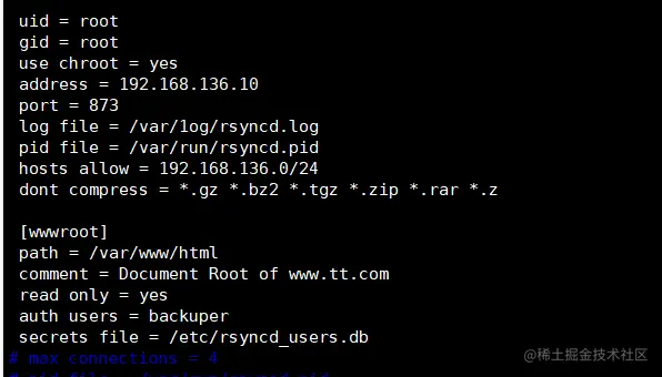 rsync -avz --password-file=/etc/server.pass backuper@192.168.136.10::wwwroot /opt/ #免密同步