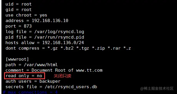 port = 873 #监听端口tcp/udp 873,可通过cat /etc/services | grep rsync查看