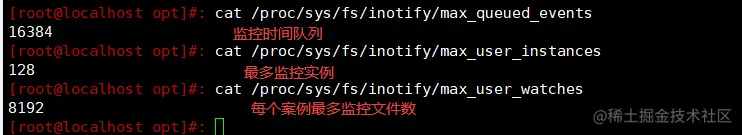 在Linux内核中,默认的inotify机制提供了三个调控参数: