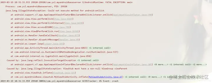 所以当我们第二次再调用inflate方法时,viewstub的parent已经为空了;就会抛出此异常;