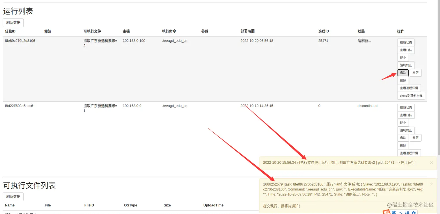 - 在 【可执行文件管理】页面新建可执行文件
