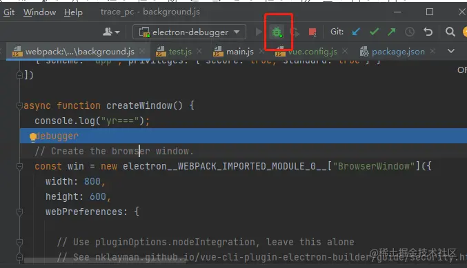 vue-cli-plugin-electron-builder 调试 webstrome debugger 大鱼老吃小鱼 2022-11-13 231 阅读1分钟 参考:github.com/nklayman/vu… 方法1:chrome://inspect/#devices 方法2: vue-cli-plugin-electron-builder文档: nklayman.github.io/vue-cli-plu…