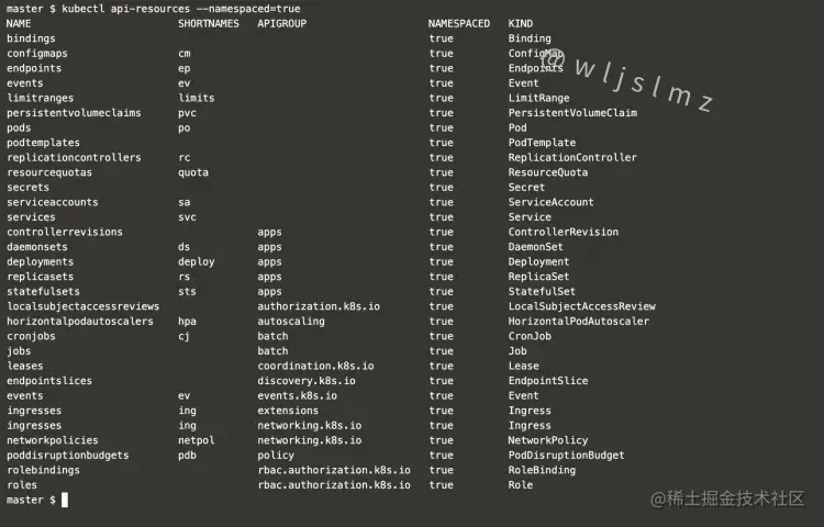 kubectl api-resources --namespaced=true #获取可以在命名空间中的Kubernetes对象