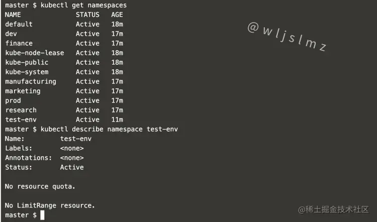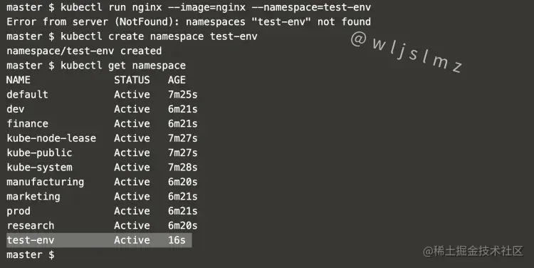 要创建命名空间“test-env”,请执行以下命令(k8s create namespace)。