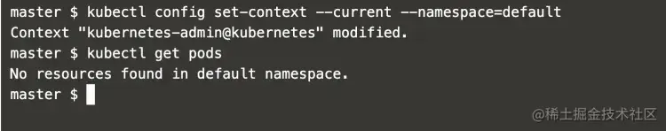 kubectl config set-context --current --namespace=default #检查命名空间为默认值