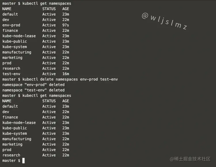 kubectl delete namespaces env-prod test-env #删除一个命名空间
