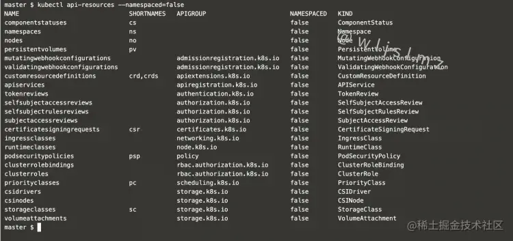 kubectl api-resources --namespaced=false #获取永远不能在命名空间中的Kubernetes对象列表