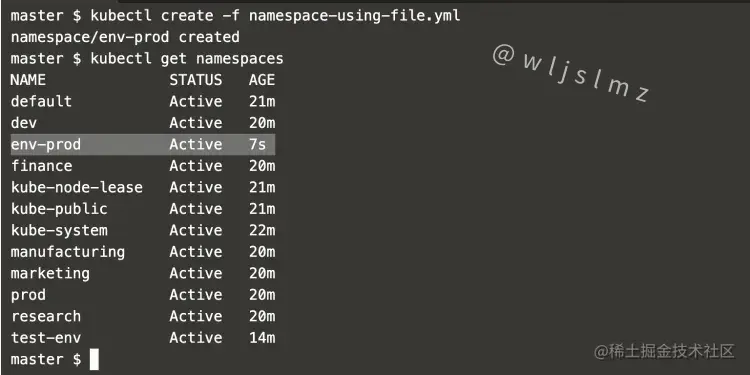 kubectl create -f namespace-using-file.yml #使用.yml文件创建命名空间