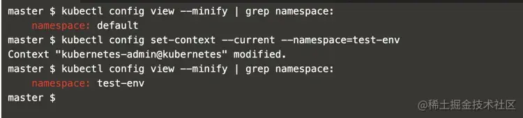 kubectl config set-context --current --namespace=test-env #设置默认命名空间