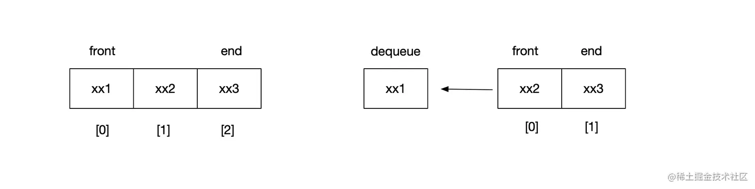 dequeue出队,把队首元素删除,队首元素的next节点成为新的队首,队列元素size减一,返回出队元素的值。