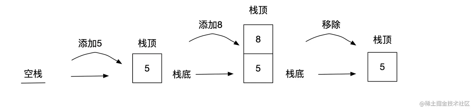 栈:一种遵守后进先出(LIFO)原则的有序集合。栈既可以通过数组实现,也可以通过链表来实现。不管基于数组还是链表,入栈、出栈的时间复杂度都为O(1)