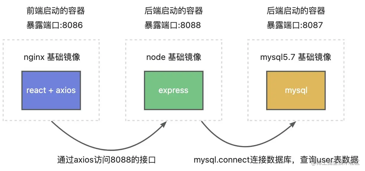 本文主要是使用 docker-compose 实现react【nginx】、express【node】、mysql【mysql】搭建项目前端通过express访问mysql数据库的功能。