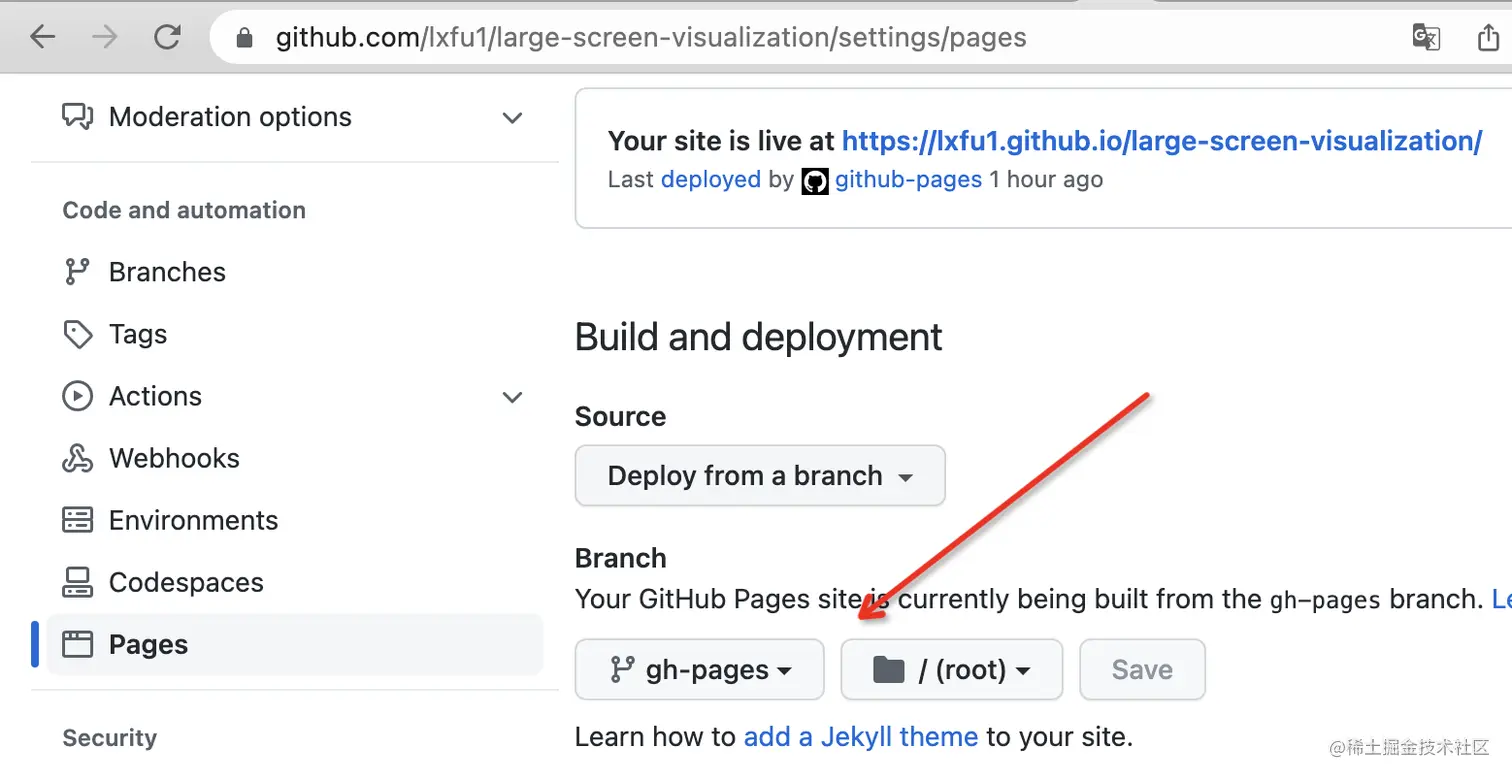 开发过项目的同学都知道,前端编写的代码最终是要进行部署的,目前比较流行的是前后端分离,前端独立部署,通过 proxy 的方式请求后端服务;或者是将前端构建产物推到后端服务上,和后端一起部署。如何做自动化部署呢,对于一些不依赖后端的项目来说,我们可以借助 github 提供的 gh-pages 服务来做自动化部署,CI、CD 仅需配置对应的 actions 即可,在仓库 settings/pages 下面选择对应分支即可完成部署。