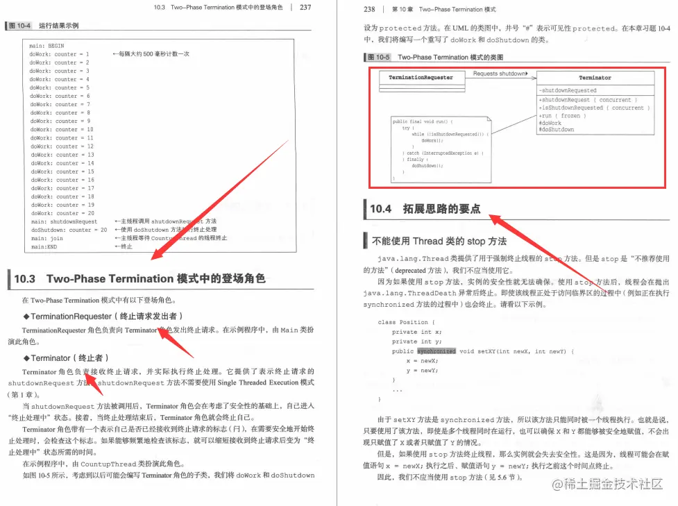 本章将介绍用于终止线程的Two-Phase Termination模式。该模式能够采用合适的终止处理来安全地终止线程。本章还将介绍线程的中断处理,并给出java . util. concurrent包中CountDownLatch、CyclicBarrier 的示例程序。