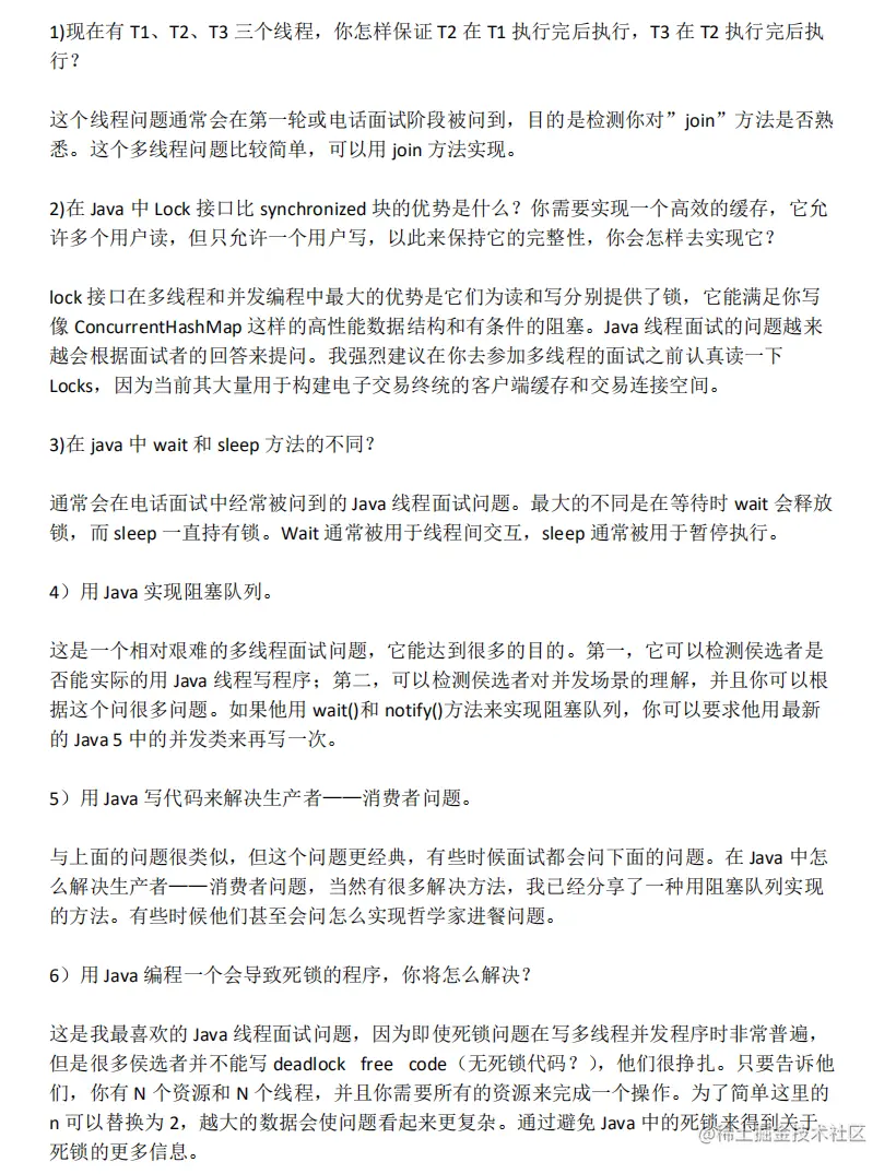 最后,笔者还整理了一些Java多线程面试题~~~