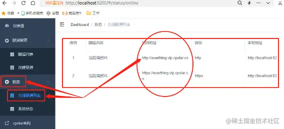 此时我们可以点击cpolar主界面左侧“状态”项下的“在线隧道列表”页面,找到这条数据隧道的入口,也就是公共互联网地址,从而在局域网以外的电脑上轻松查询和下载本地电脑上的文件资料。
