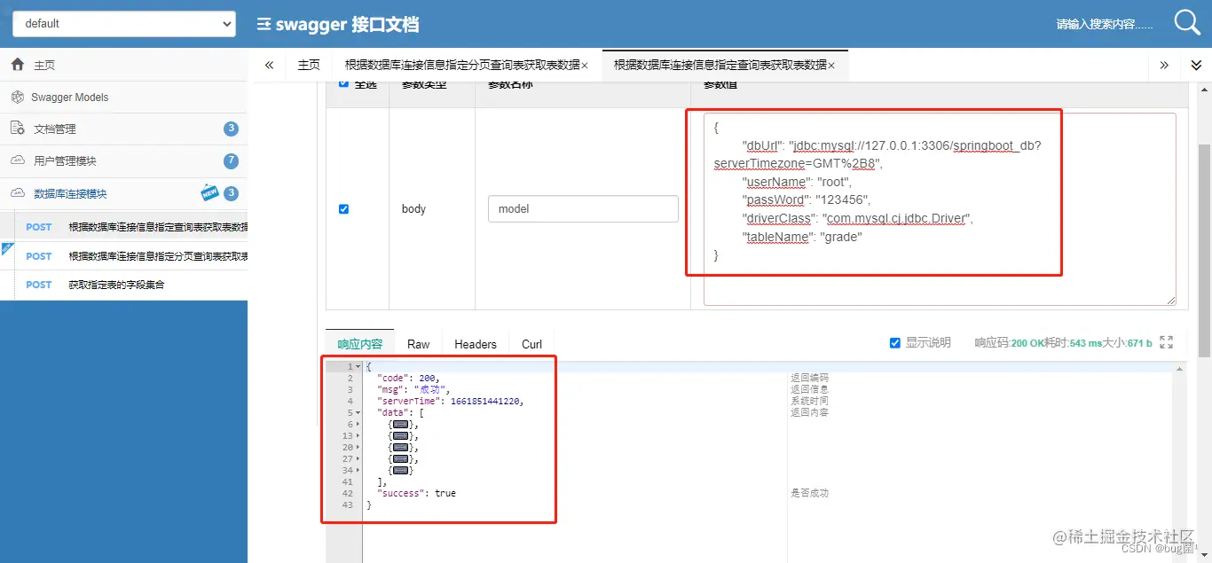 很完美,这不就得回到以前玩springmvc的日子么,通过连接信息手动连接数据并获取表结构字段,且返回该表的数据。