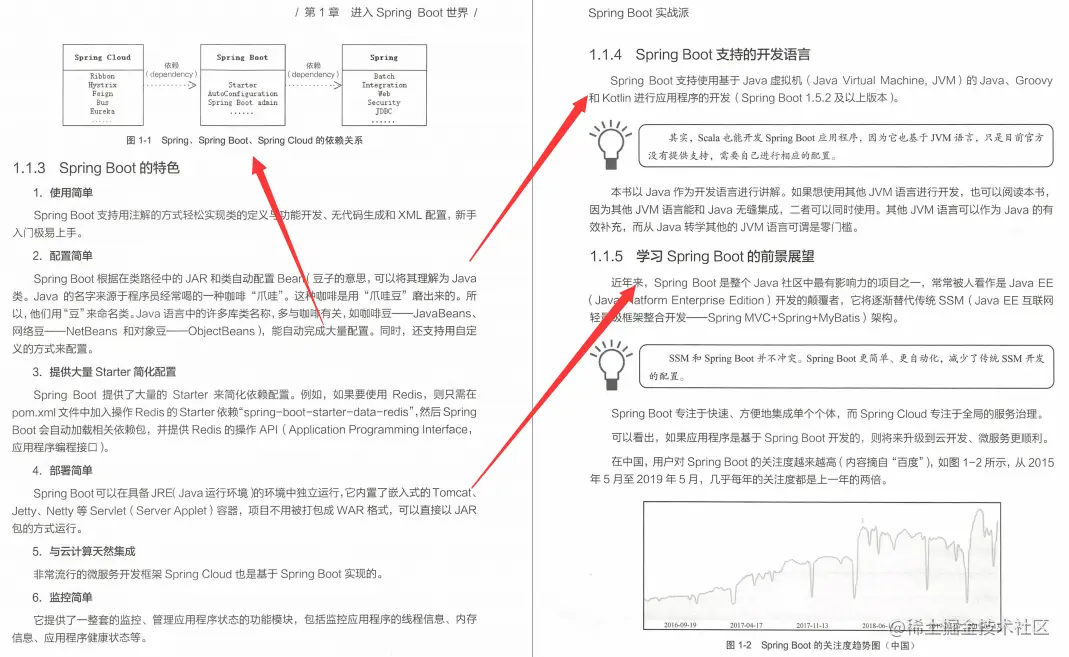 第1章讲述了Sping、Spring Boot 和Spring Cloud 之间的关系,还重点讲述了如何利用开发工具(如IDEA)来实现开发,如何通过API文档来寻找类对象方法,告诉我们在开发过程中如何学习、发现和解决问题,这在很多书中不曾有过。