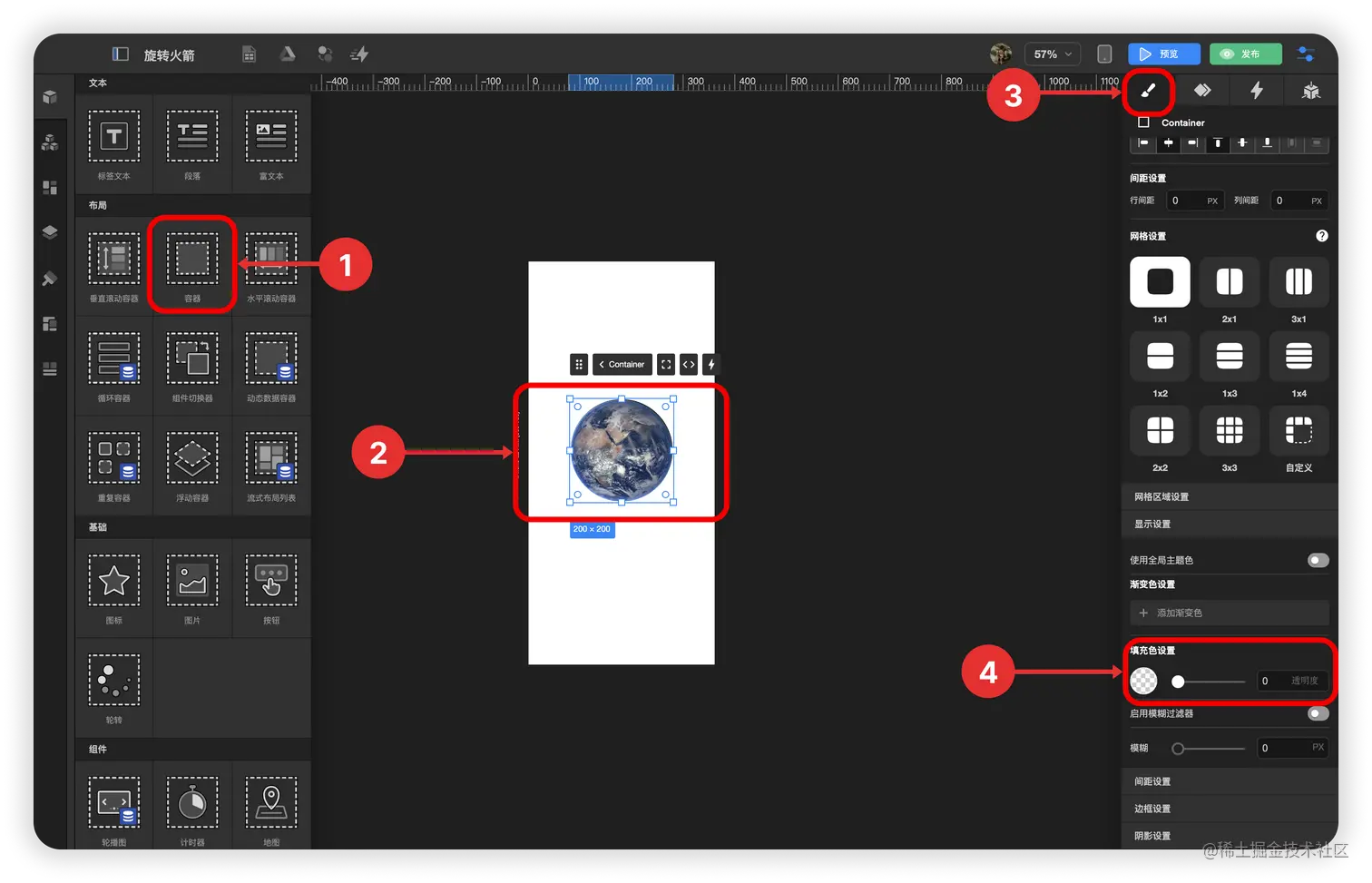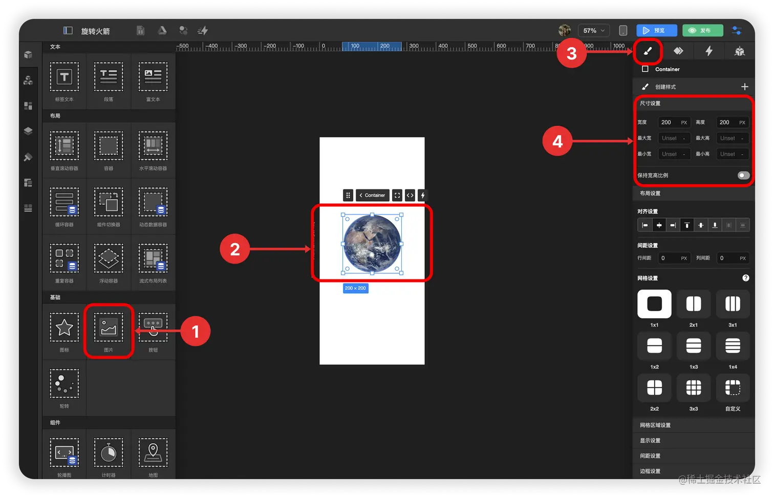 - 拖拽 容器组件 到 图片