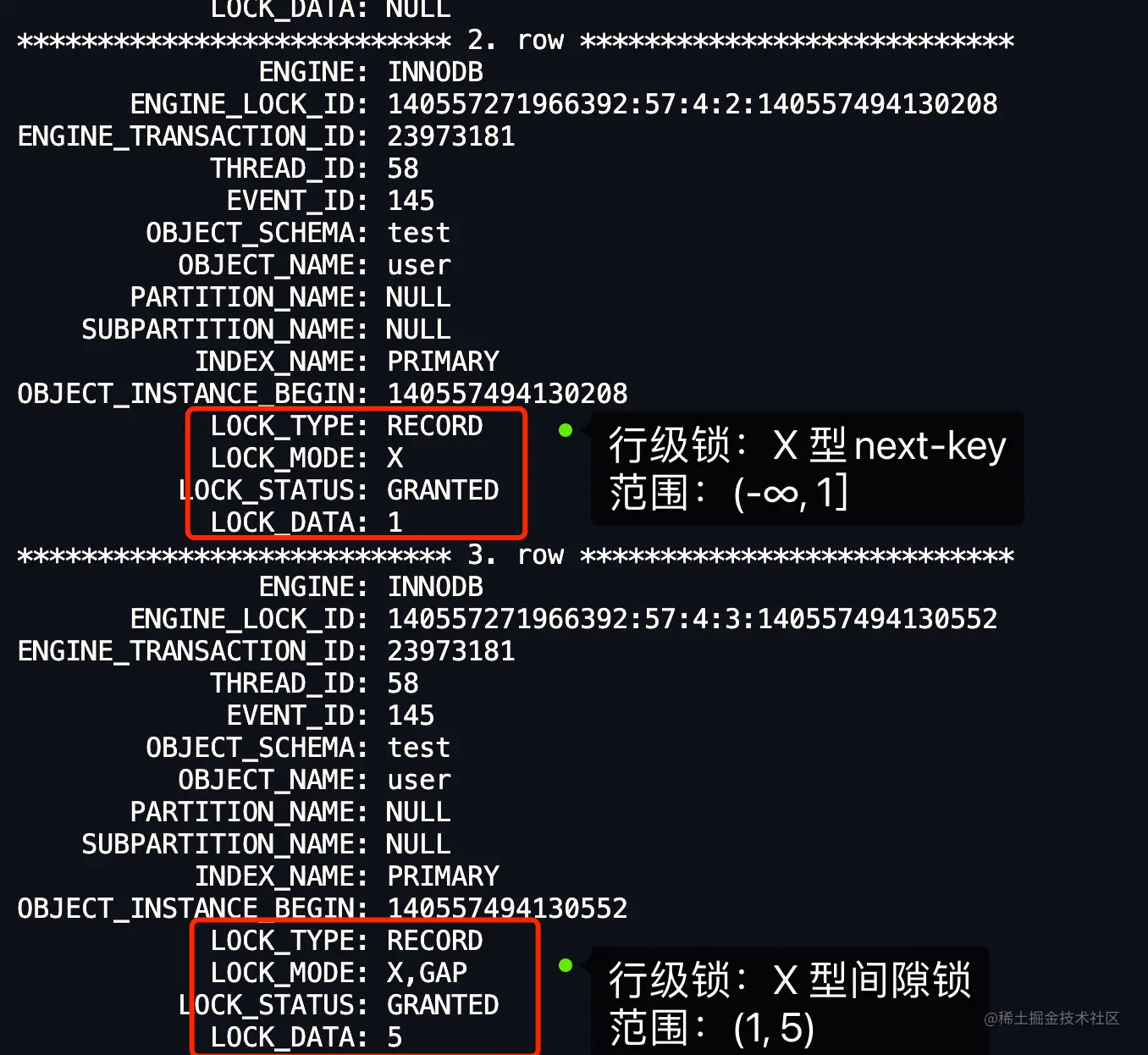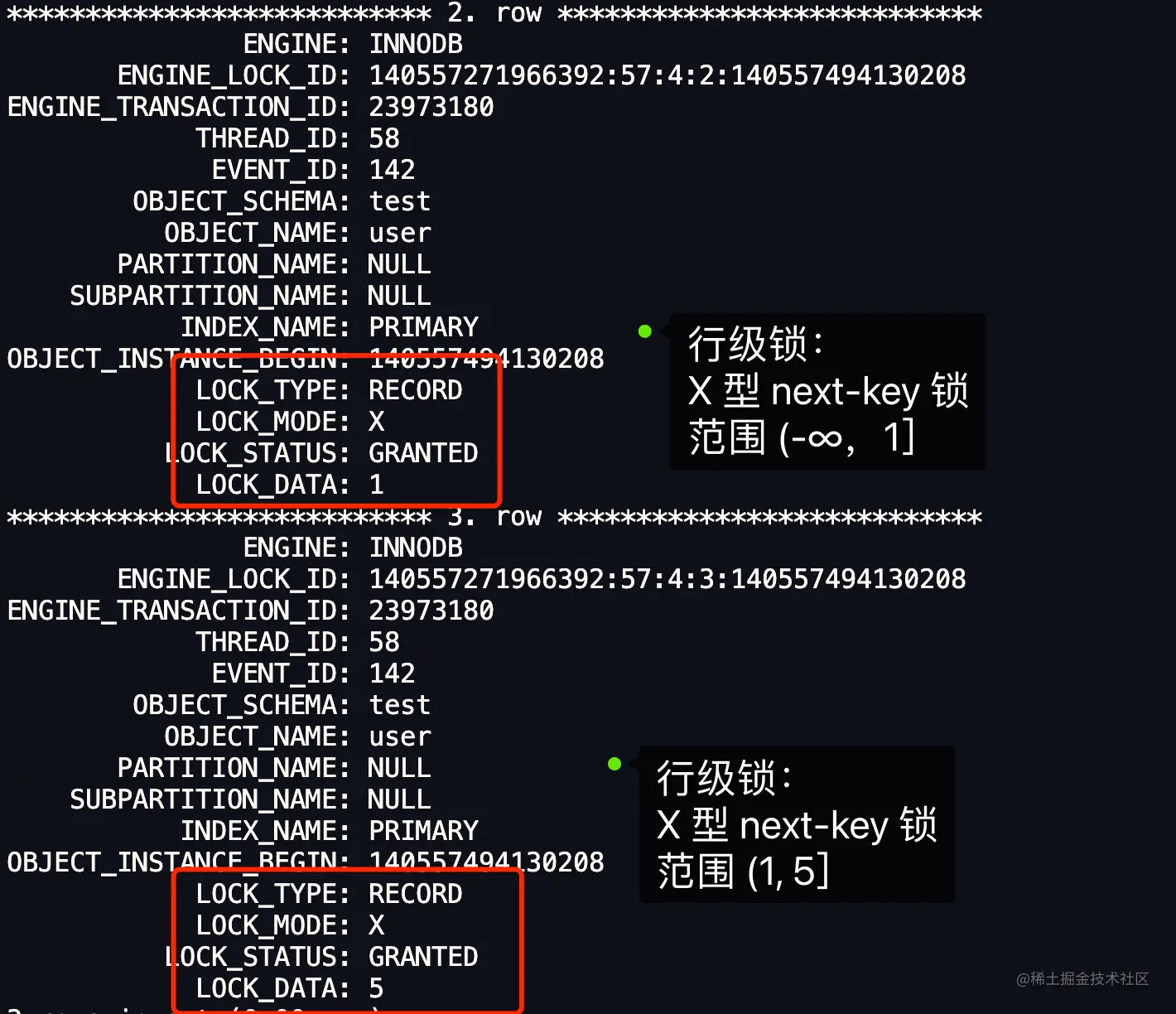 X,说明是 next-key 锁; - 如果 LOCK_MODE 为