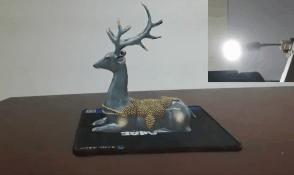 同样,当环境光的颜色不停变化时,虚拟物体也会通过光照估计能力反射出不同颜色实时变化的光照渲染效果。