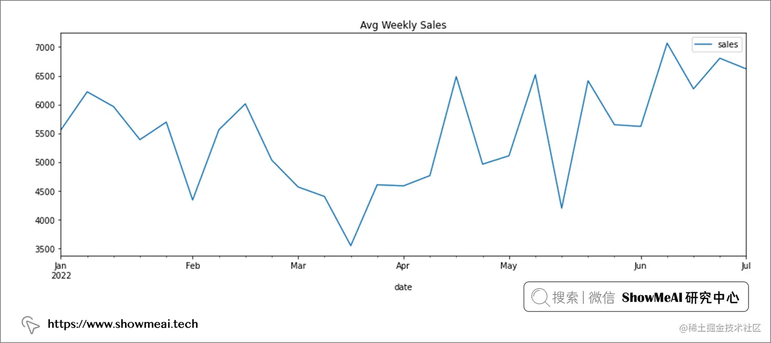 上图可以看出,销量在3月和4月之间的销售额有所下降,而在 6 月中旬达到顶峰。