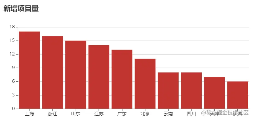 本周新增项目量的地区TOP10:上海、浙江、山东、江苏、广东、北京、云南、四川、天津、陕西
