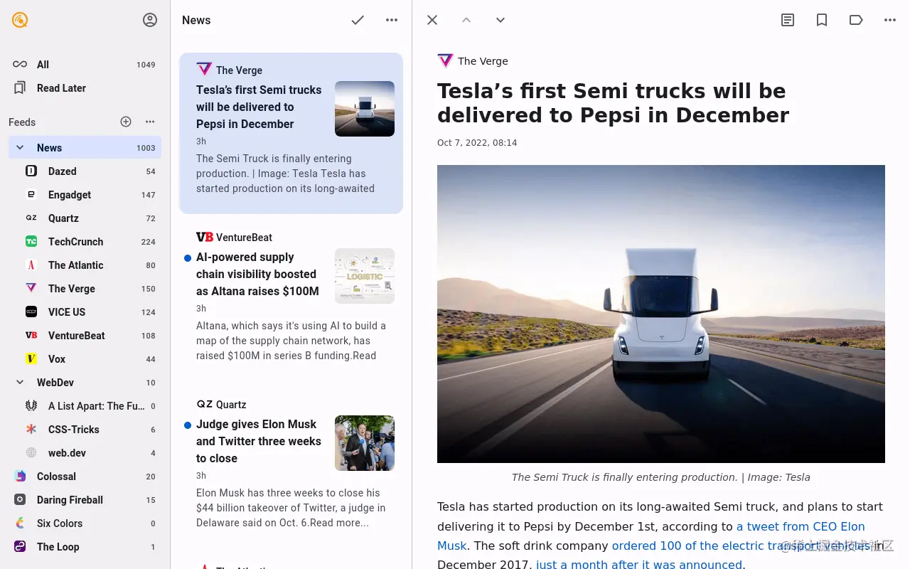 - QiReader RSS 阅读器 - 这是一个全平台的 RSS 在线阅读器,内置英汉词典,划词翻译很方便,支持所有桌面和移动设备 PWA 应用程序。很简单的工具,经典三栏布局和单行列表布局。开发者 @weijarz,产品提供付费增值服务,支付系统国内用户是直接通过微信打赏备注账号实现的,这种形式也是开发者前期解决国内支付的一种办法,国外用户作者提供了 paypal 支付。