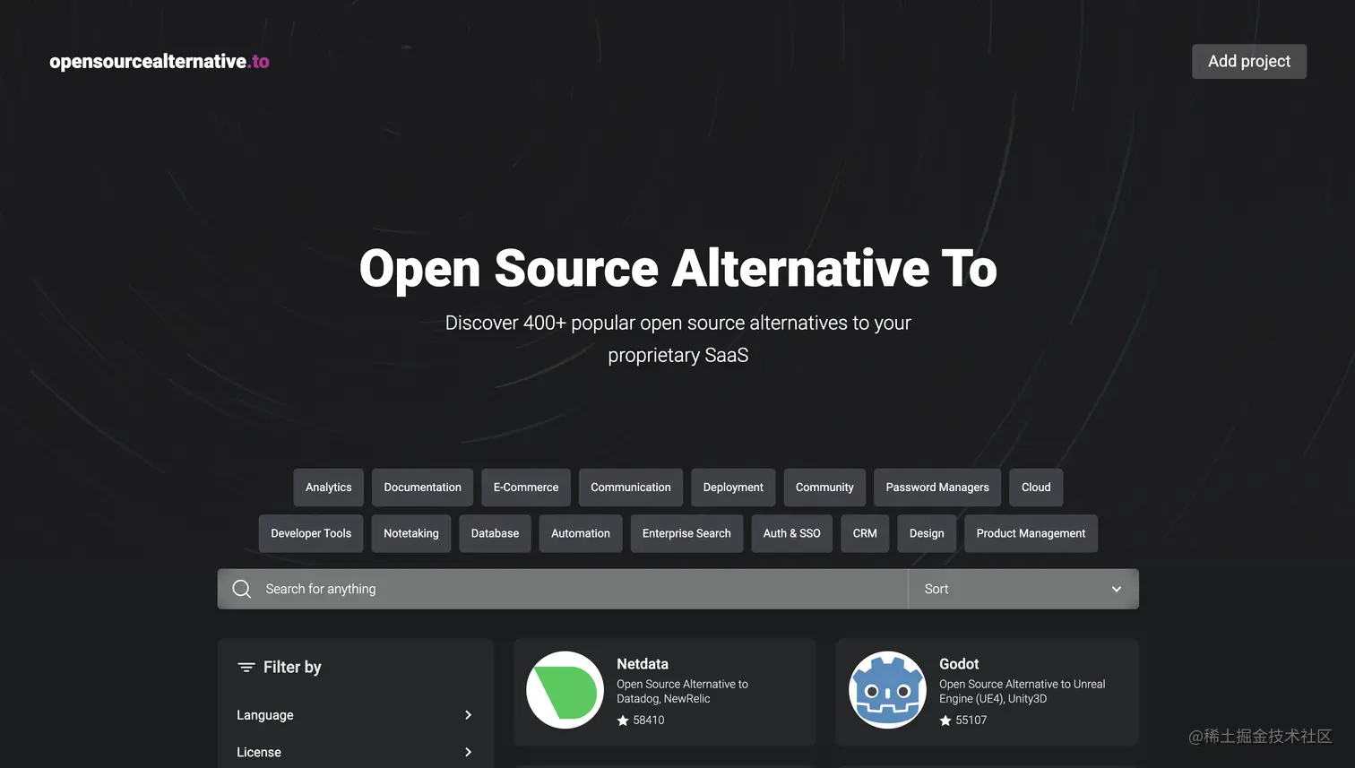- opensourcealternative.to - 这个网站收集了很多专业 SaaS 软件的开源替代方案,有400多种。