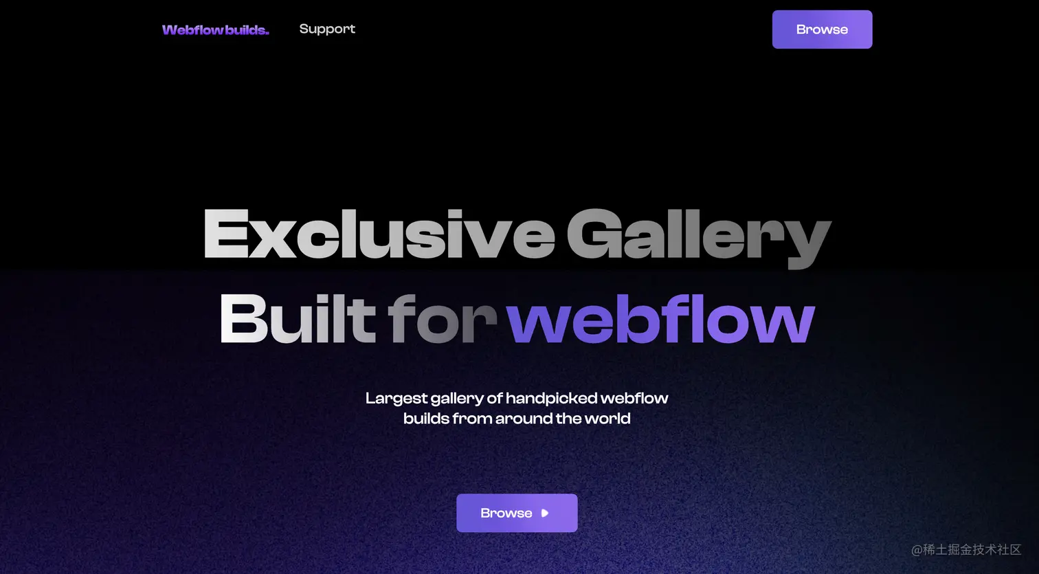 - Madeinwebflow - 这个网站收集了一些基于 webflow 设计开发的网站,网站设计的挺不错的,作者 @BeingMani97 花了两个小时就做好了这个网站,确实 Webflow 做这类网站还是很有优势的。