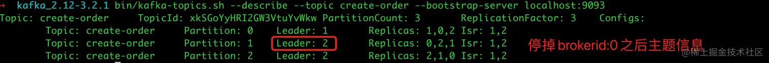 topic:create-order,partition:0在停掉brokerid:2的情况下,分区leader分配在brokerid为1的机器上