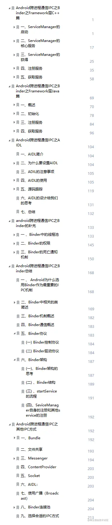 篇幅原因,就不在这里为大家赘述了,有需要的小伙伴:可在评论区下方留言,或者私信发送 "面试" 即可领取这份 《Android Binder 学习手册》 ,助你早日成为底层原理大师!